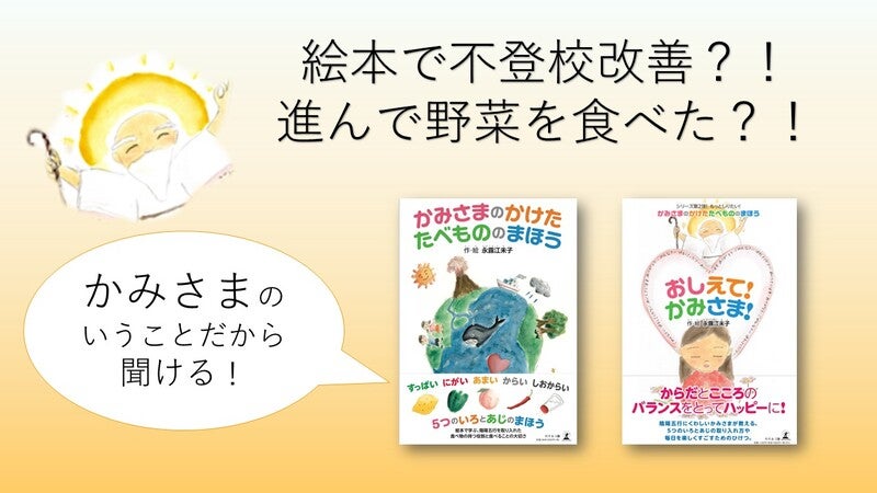 東洋医学・陰陽五行の知識をもちいた食育絵本「かみさまのかけたたべもののまほう」・子育てのヒントをかみさまからもらう「おしえて!かみさま!」