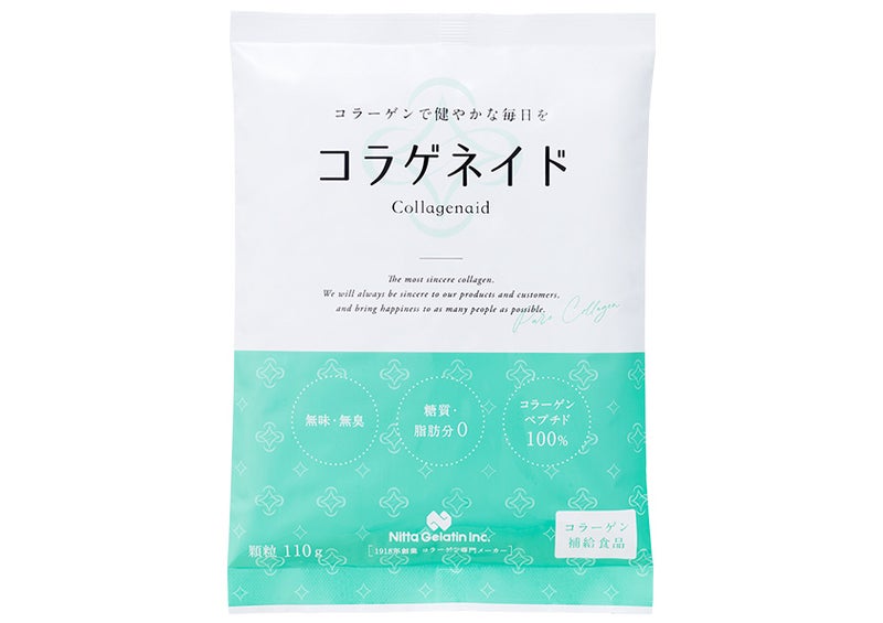 ゼラチンを低分子化したコラーゲンペプチド100%の「コラーゲン補給食品」です。