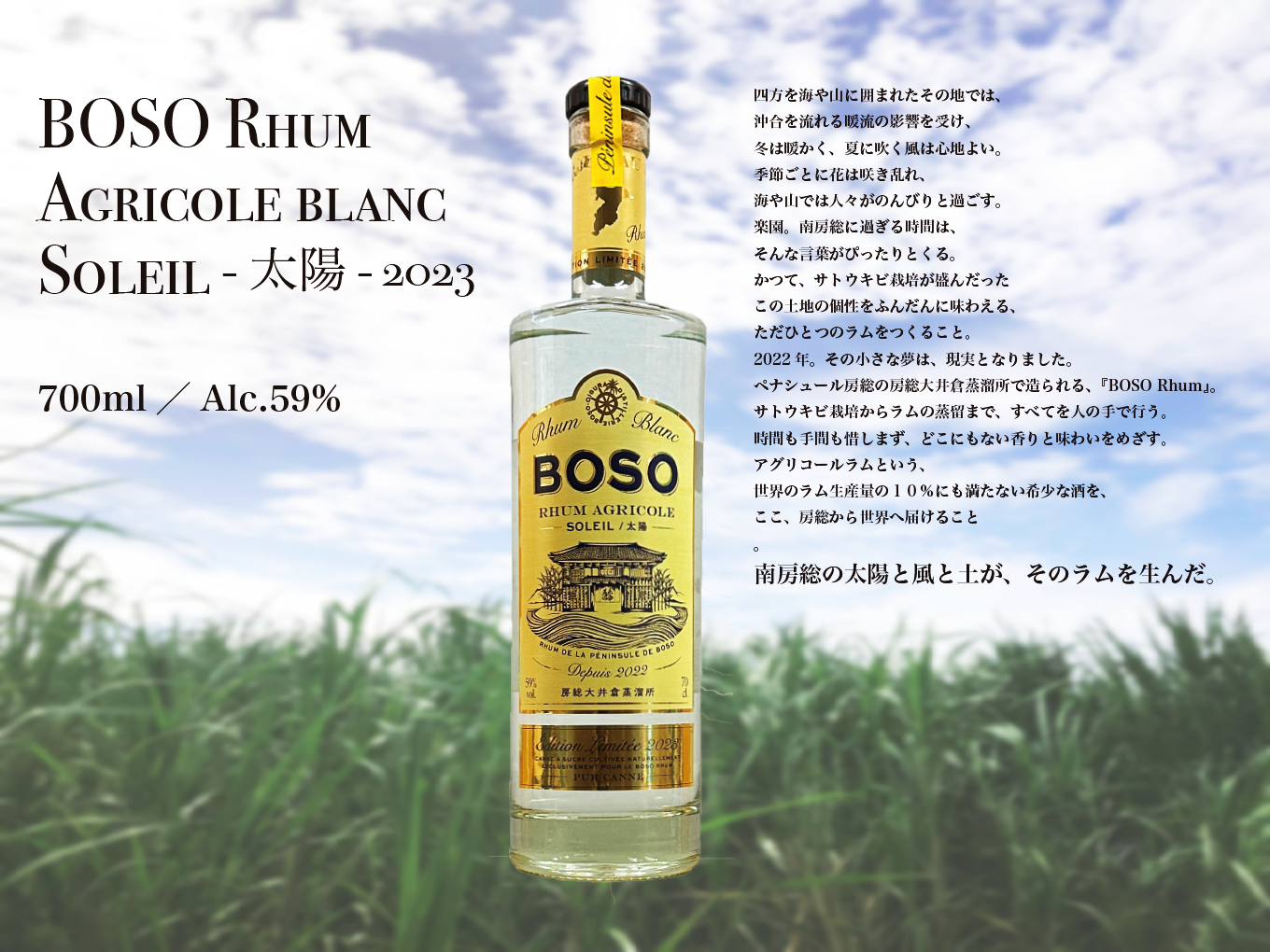 BOSO Rhum blanc Agricole Soleil -太陽-