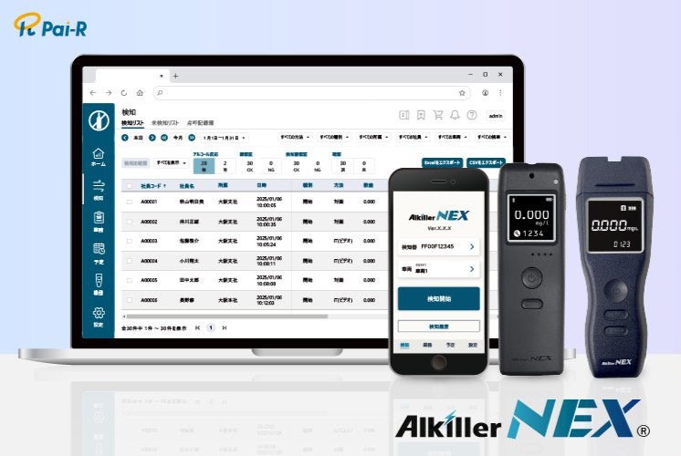 「アルキラーNEX」は、スマートフォンとアルコール検知器を連動させ、「いつ・どこで・誰が」アルコールチェックしたかを点呼記録と合わせてクラウドでデータ⼀元管理できるサービスです。