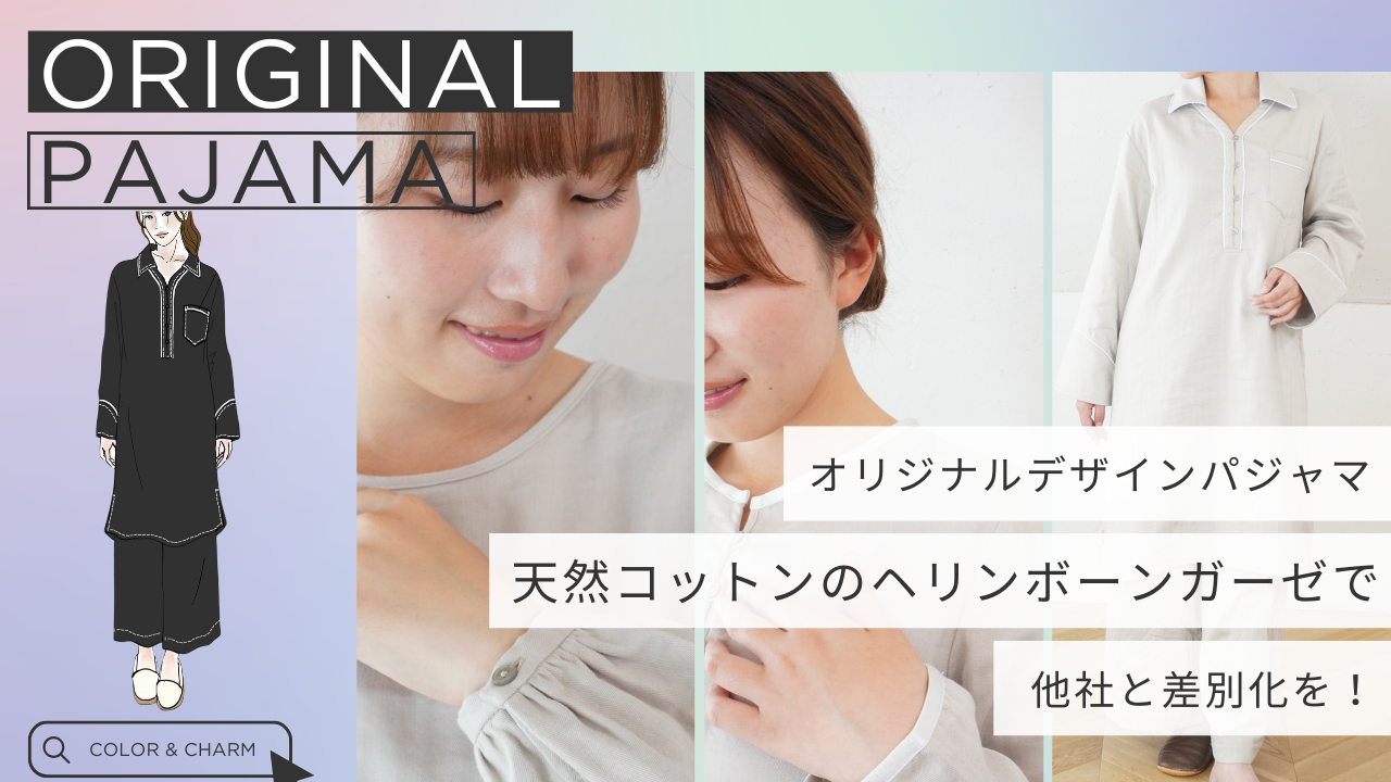 施設ごとのオリジナルデザインを考案し、ブランド価値を高めるアイテムとしてご提案。さらに、ご注文時にはオリジナルカラーを無料で染色し、他にはない特別なパジャマをお作りします。