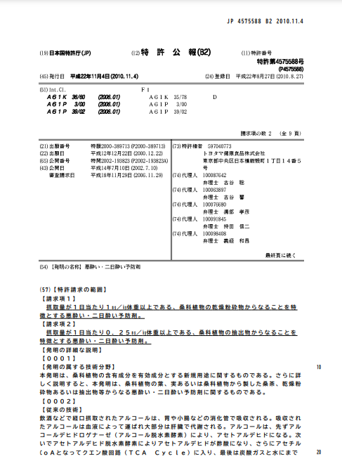 宴会の際に体に与えたい栄養分を含む植物を厳選し、桑の葉粉末、高麗人参の実、黒クコの実、リヴロンガ™等を配合。