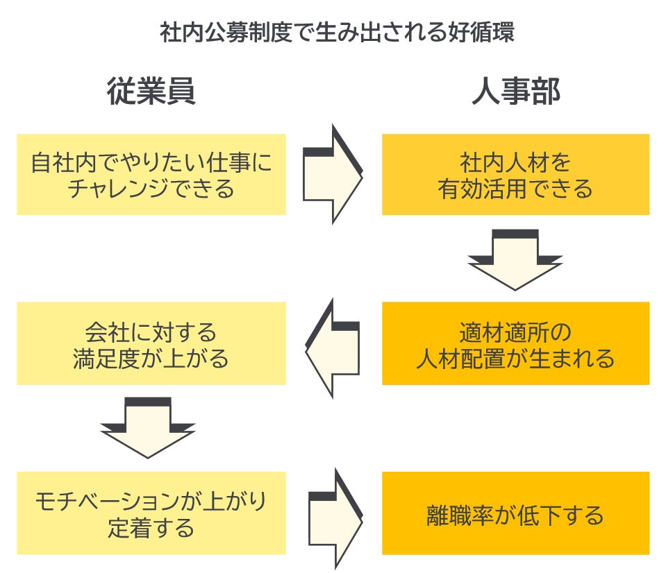 2023年7⽉より開始した、グループ企業内の社員⾃らが⾃社(またはグループ会社)内の求⼈に応募することができて、⼈事部⾨側からも社員をアプローチ(スカウト)できる、双⽅向性型の社内公募(ジョブポスティング)システムです。