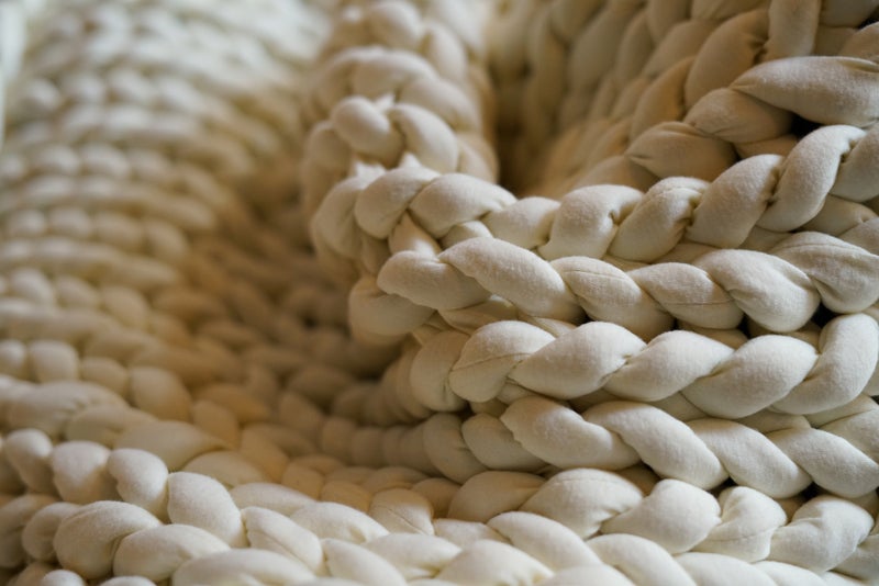 掛けたり巻いたりくるまったり、加重ブランケットとしてはもちろん、丸めてたたんでクッションとして。