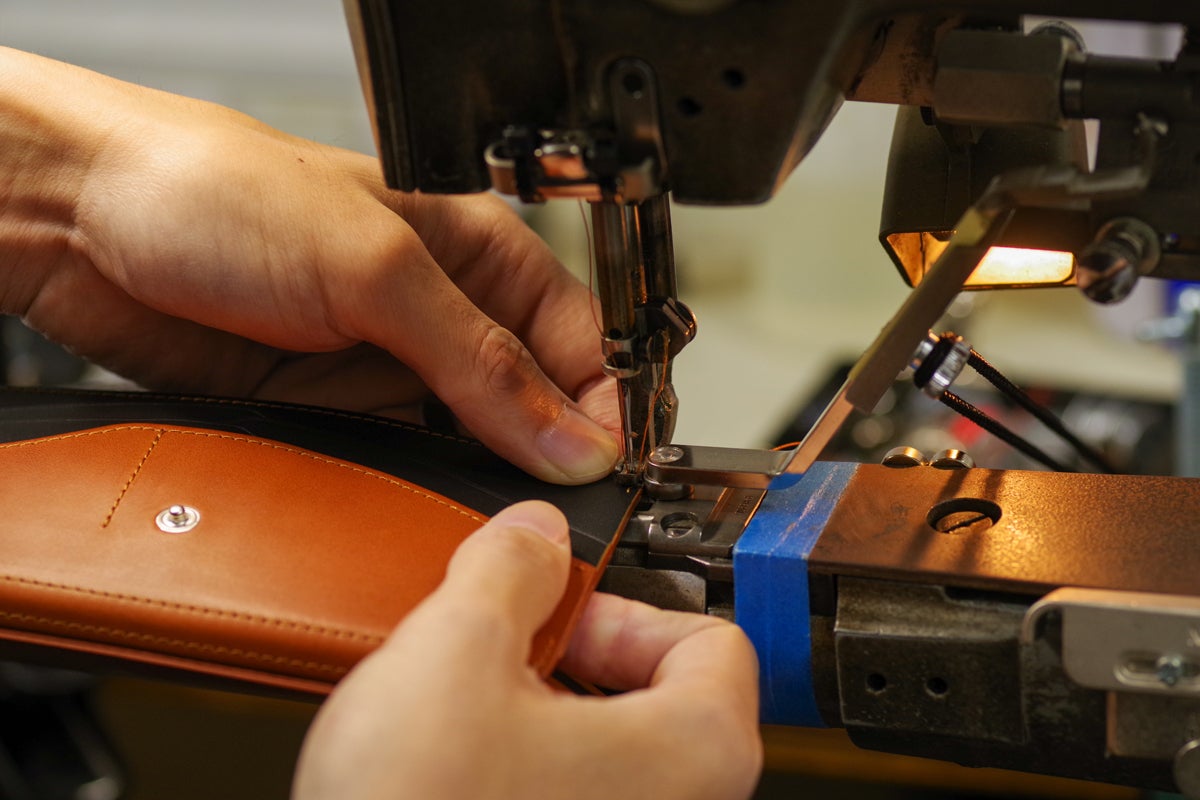 国内の提携工場にて製作しています。特殊な構造の一部パーツは香川のヘッドファクトリーで仕立てています。