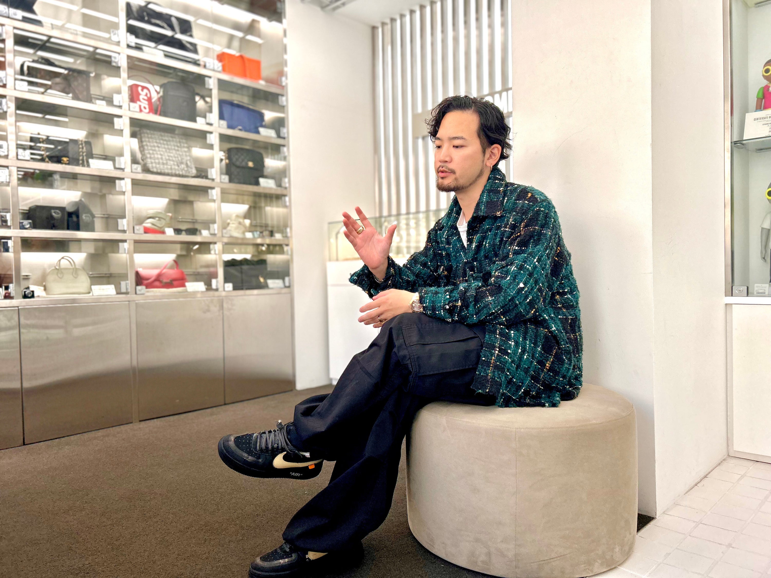 現在はgoro'sとCHROME HEARTSをメインとしたアクセサリーリユース販売店舗「OneStyle」と稀少価値を放つ、高級ブランドや激レアアイテムの一生モノと巡り合えるプレミアムアイテム専門店「AWESOME」にてマネージャーとして勤務。