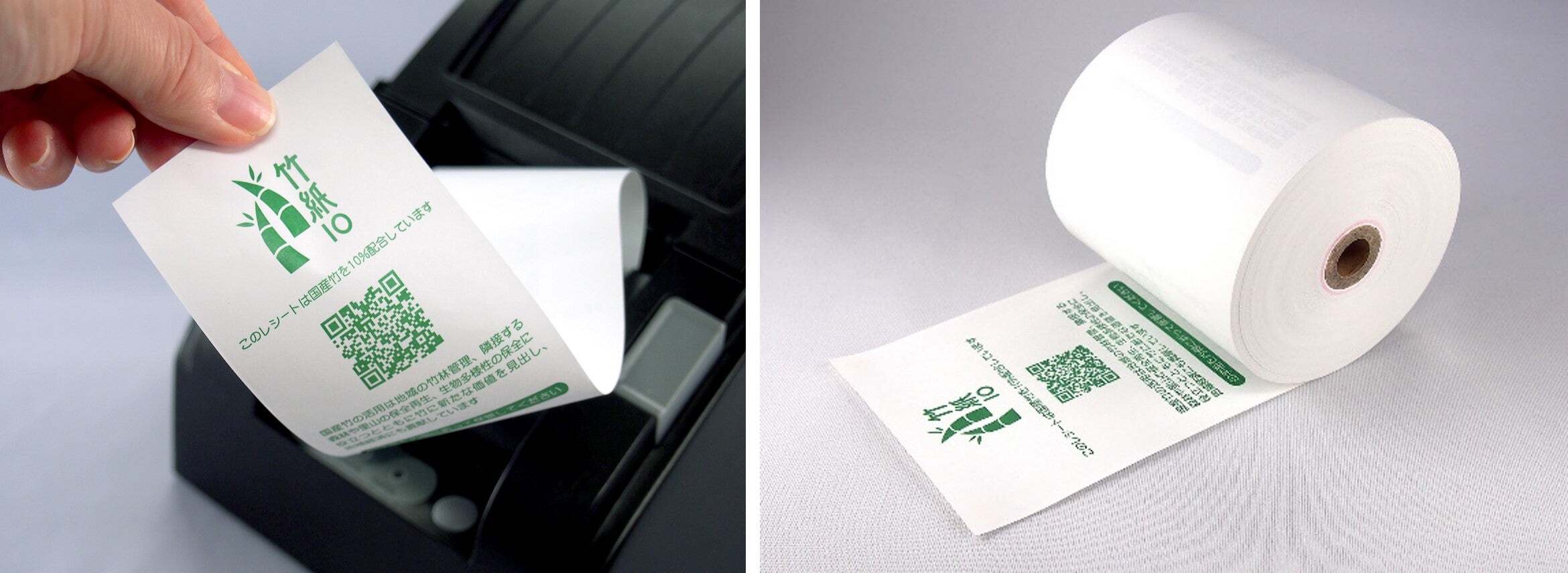 「里山の環境保全と地域経済への貢献」に向き合う企業とその理念に共感した企業。2社の技術で誕生した竹紙配合のレジロール紙
