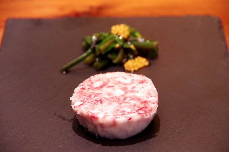 チャーシュー同様腕肉やすね肉を煮込み煮凝り風に仕上げて『フロマージュドジャレ』は売れ残りで一番多い腕肉や口溶けのよい脂を中心に使っていて生産者様の一番助けになる商品です。
