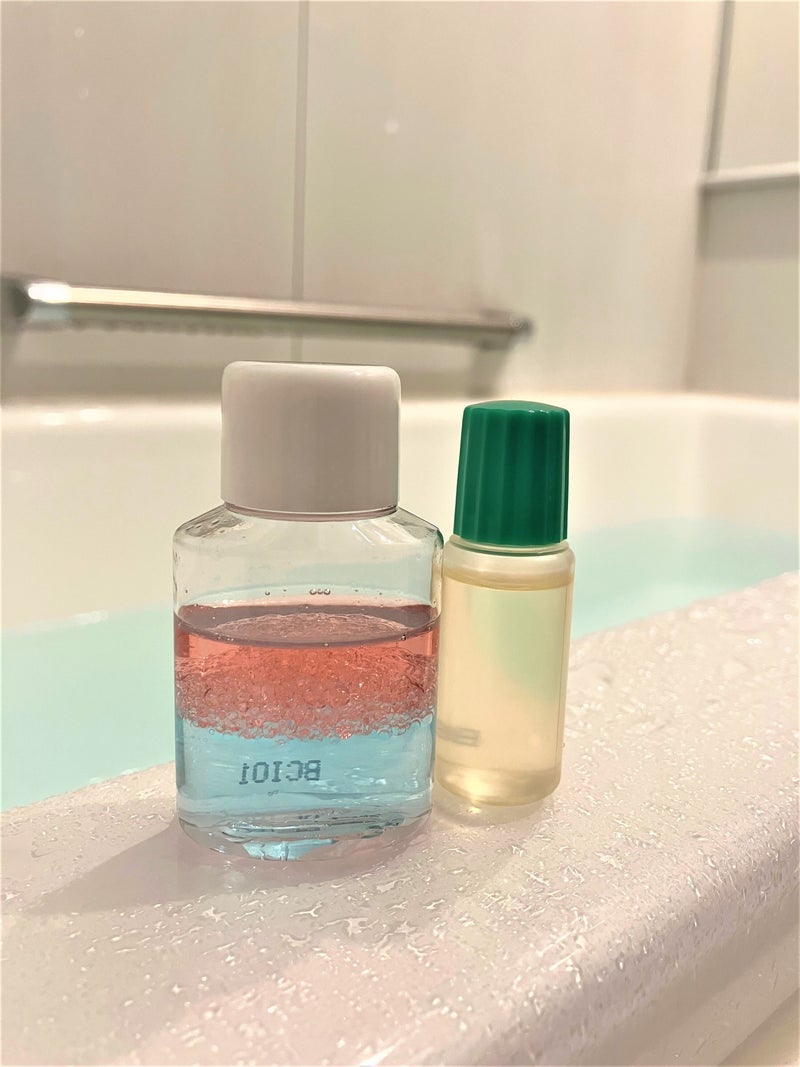 【遊べる入浴剤】どれだけ振っても混ざらない2層の液体。そこに魔法の液を入れてもう一度振ってみると…?!混ざった後はお風呂に入れてバスエッセンスと楽しめるので家族もうれしい♪子どもが大好きな「振り混ぜる」アクションで楽しみながら乳化の科学を学べる実験キットです。