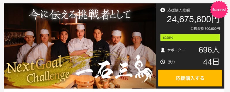 「鮨処 一石三鳥」Makuakeにてクラウドファンディング実施中