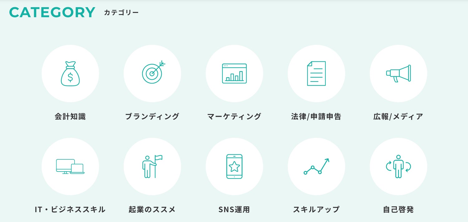 プロの講師が監修したアニメーション動画が何本でも、何度でも見放題。フリーランスに必要な10のカテゴリから、興味関心に合わせて自由に学んでいただけます。