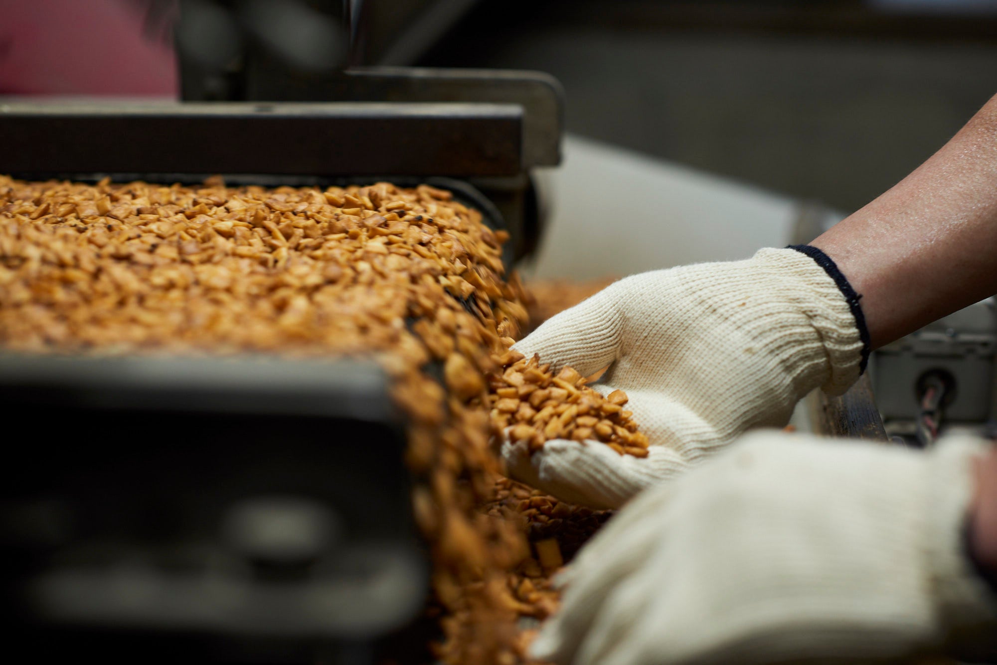 使用している茎ほうじ茶は、碾茶の一番摘みの茎を原材料としています。旨味成分のテアニンをたっぷりと蓄えた柔らかな茎は、焙煎することで品のある鮮やかな香ばしさとさっぱりとした優しい味わいが生まれます。炭火炒り餅の繊細な香ばしさを引き立てながら、 茎ほうじ茶独自の風味もしっかり活きるよう、絶妙なバランスでブレンドしました。