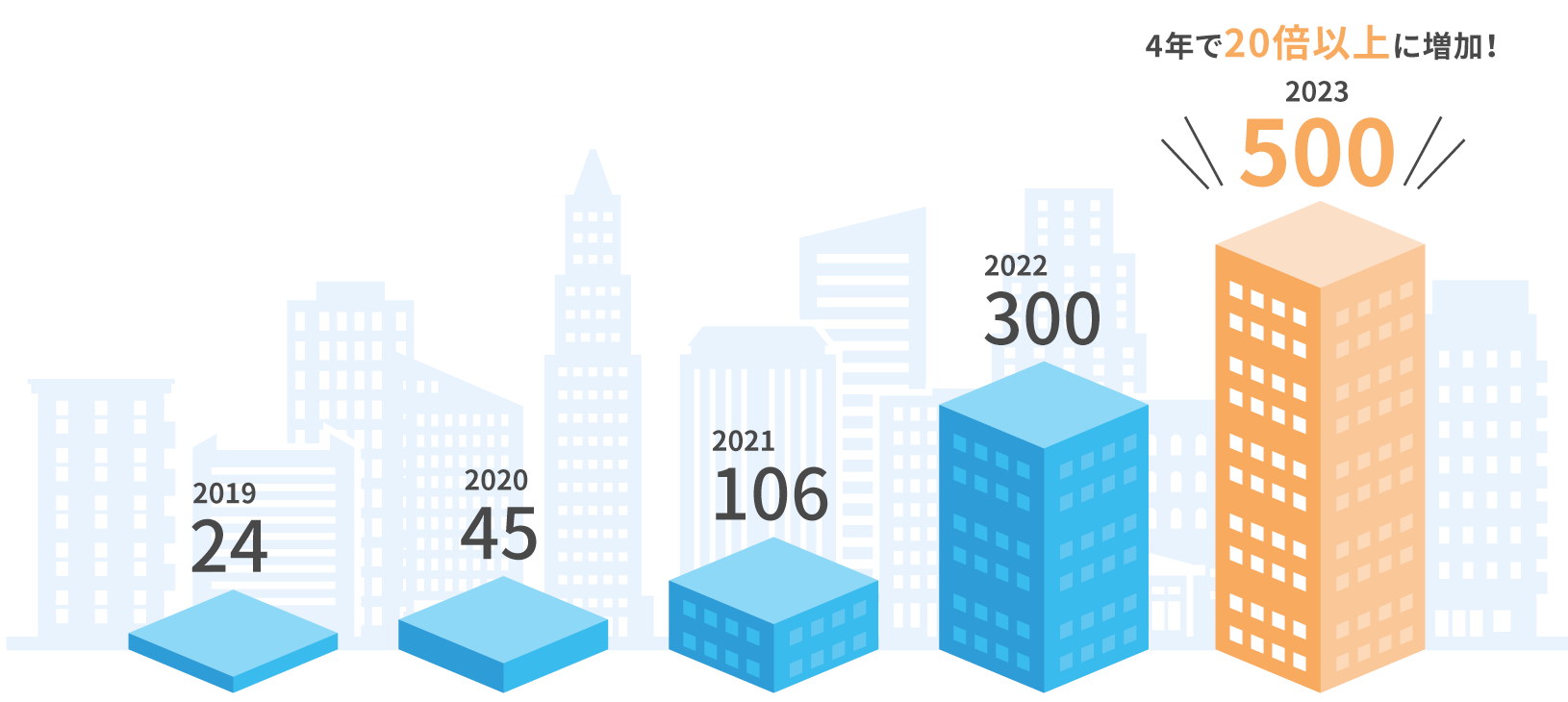 月間10時間~、1時間あたり税込2,750円〜というリーズナブルな価格帯で、一人社長や中小企業向けにサービスを展開し、サービスローンチから4年で累計導入企業数500社を突破。