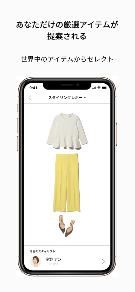 アルゴリズムによるスタイル診断やスタイリストのマッチング機能といったI Tソリューションに加え、 テレビやファッション誌で活動するプロのスタイリストからサービスが受けられる、 次世代型パーソナルスタイリングサービス。 現在、自宅訪問での「クローゼットアップデート」と外出先での「ショッピングアテンド」の2つの対面サービスとなります。