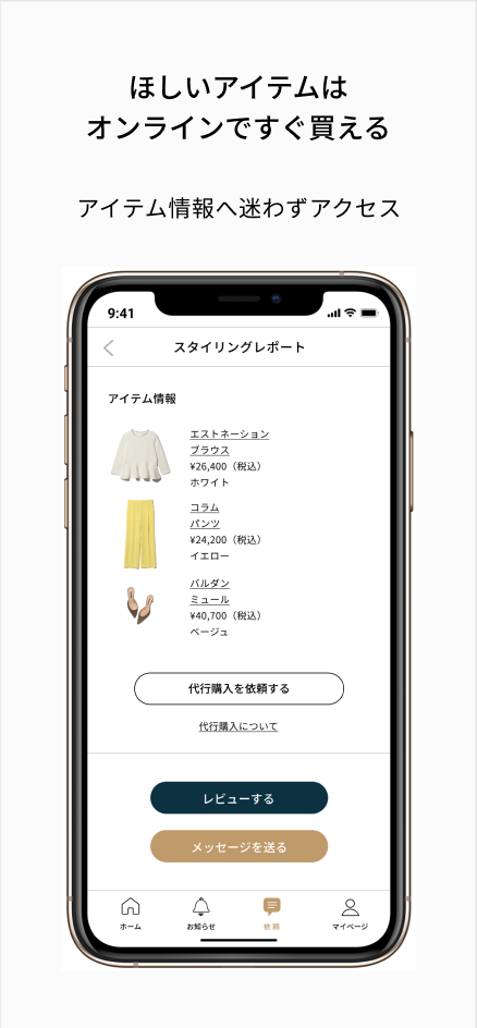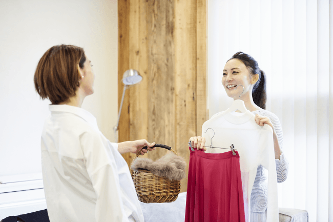 チケットを購入してスタイリストにパーソナルスタイリングを依頼すると、チケット1回分でご要望に応じた3点のアイテム提案が受けられます(トップス、ボトムス、シューズなど)。服にこだわりがある方はもちろんのこと、「服を選ぶ時間がない」「服を探すのが面倒」や「どんな服が似合うのか知りたい」「自信を持って服を着られるようになりたい」など、普段から服やコーディネートに関して手間や悩みを感じている方にもおすすめです。