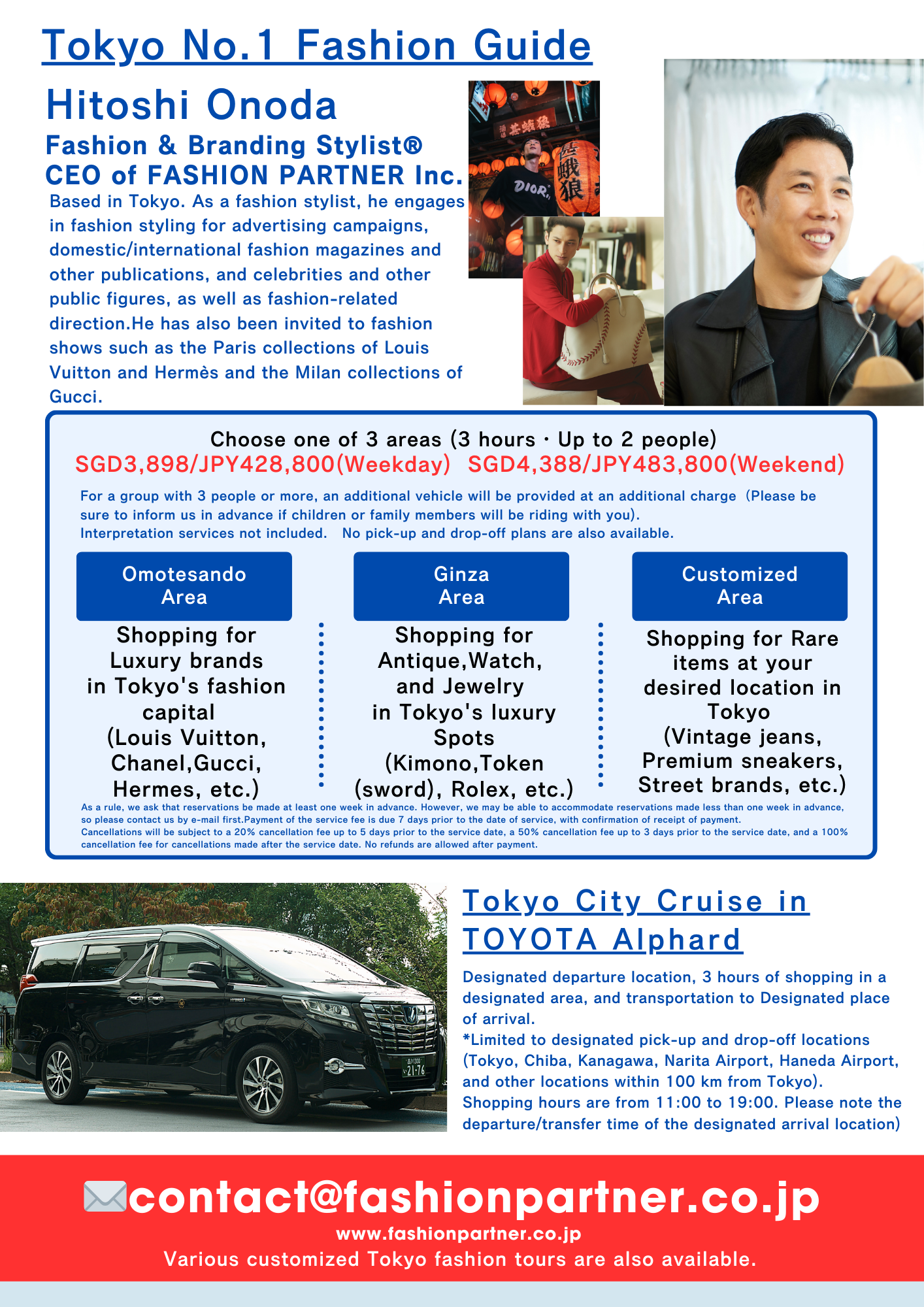 プロのファッションスタイリストとして、20年以上のキャリアを有し「キリン」「日本損害保険協会」のTVCMなどの宣伝広告、メンズ誌「Pen」を中心に国内外のファッション誌・出版物、アーティストや各界の著名人のスタイリングやクリエイティブディレクションの経験を持つ。