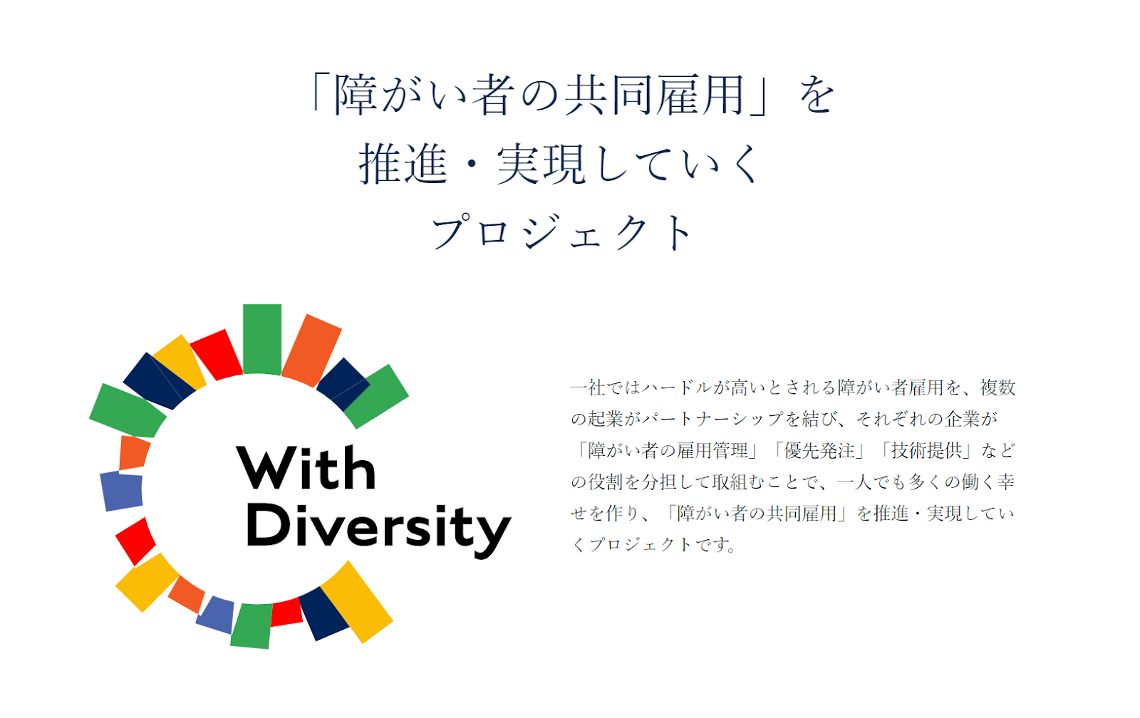 2019年、東京都国家戦略特区と連携し「障がい者の共同雇用」開始のため、ウィズダイバーシティ有限責任事業組合を設立。障がい者雇用にハードルを感じる中小企業とチームとなり、新しい雇用創出のあり方を提案している。