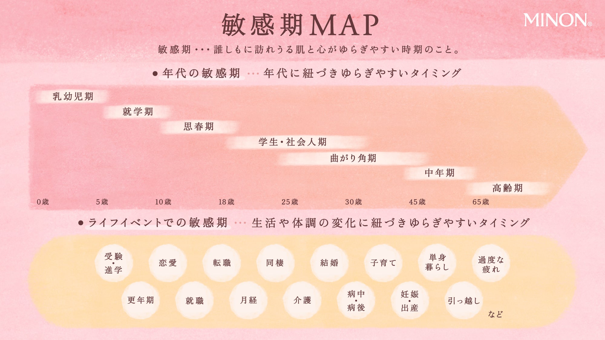 より多くの方に敏感期やスキンケアへの理解を深めていただくためのコンテンツとして、プロジェクトサイトを9月12日(火)にオープンしました。肌と心の「敏感期」に関する調査結果や、短編ムービー「肌とやさしさの物語」、ミノン推奨の肌ケアのコツを紹介する「肌ケア教室」、プロジェクト説明会&新TV-CM発表会の様子をレポートした「エールアクションレポート」などを公開しています。