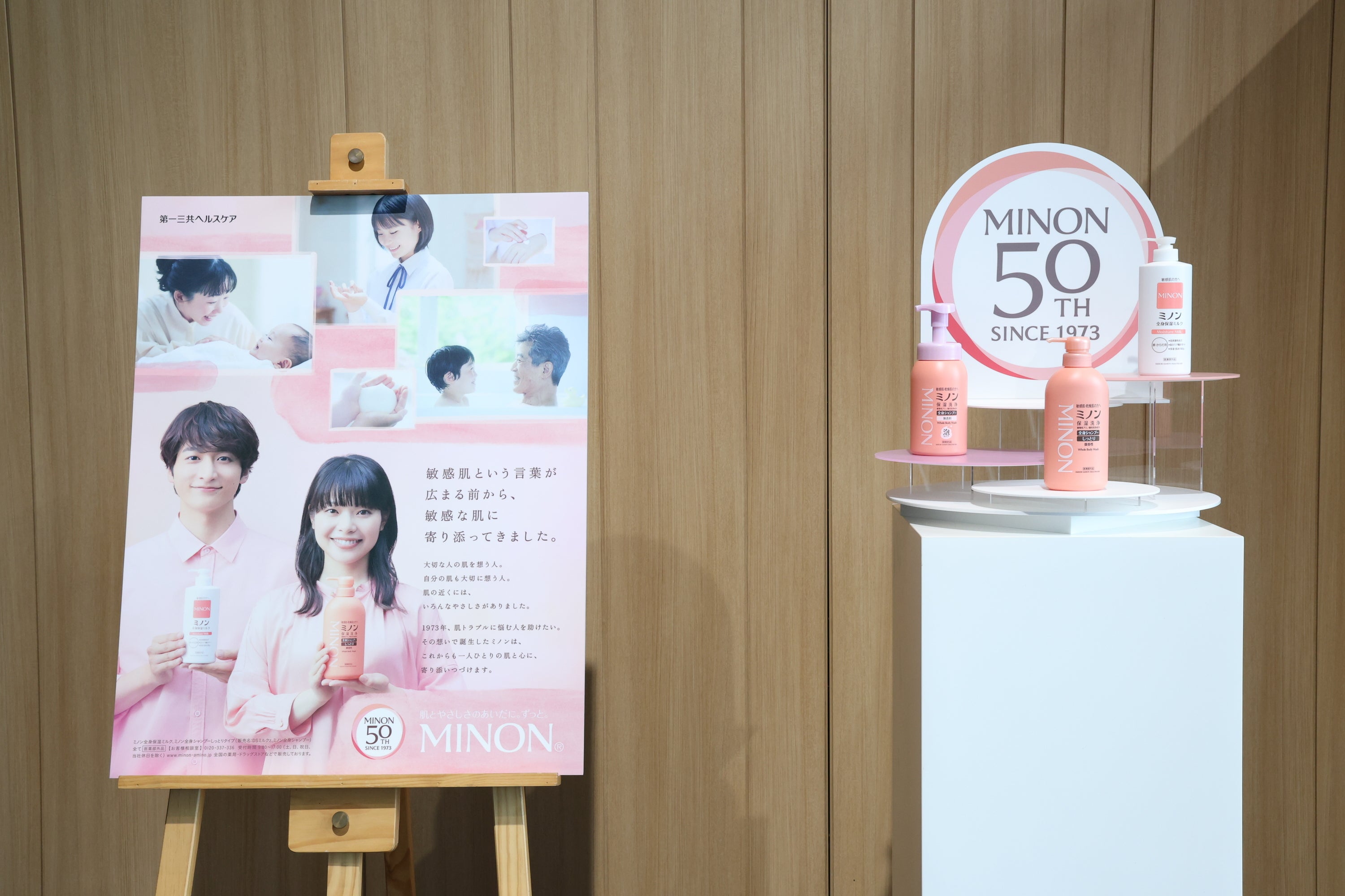 1973年、化粧品アレルギーによる肌トラブルをなくしたいという想いから誕生した「ミノン」。まだ「敏感肌」という言葉が広まる前からミノンは肌へのやさしさにこだわり続けてきました。ミノンのブランドメッセージ「肌とやさしさのあいだに。」には「肌と大切な人を想う気持ちの間に介在し続けるブランドでありたい」という願いが込められており、敏感肌トラブルに悩む方に寄り添い、またその方を想う身近な方の気持ちも見つめ続けてまいりました。2009年には肌のうるおいに深くかかわるアミノ酸の働きに着目して開発された、低刺激性フェイスケアシリーズ「ミノン アミノモイスト」を発売。やさしさだけでなく、美しさも追求し、敏感肌の方もスキンケアを楽しんでいただけるラインアップ拡充を目指しています。