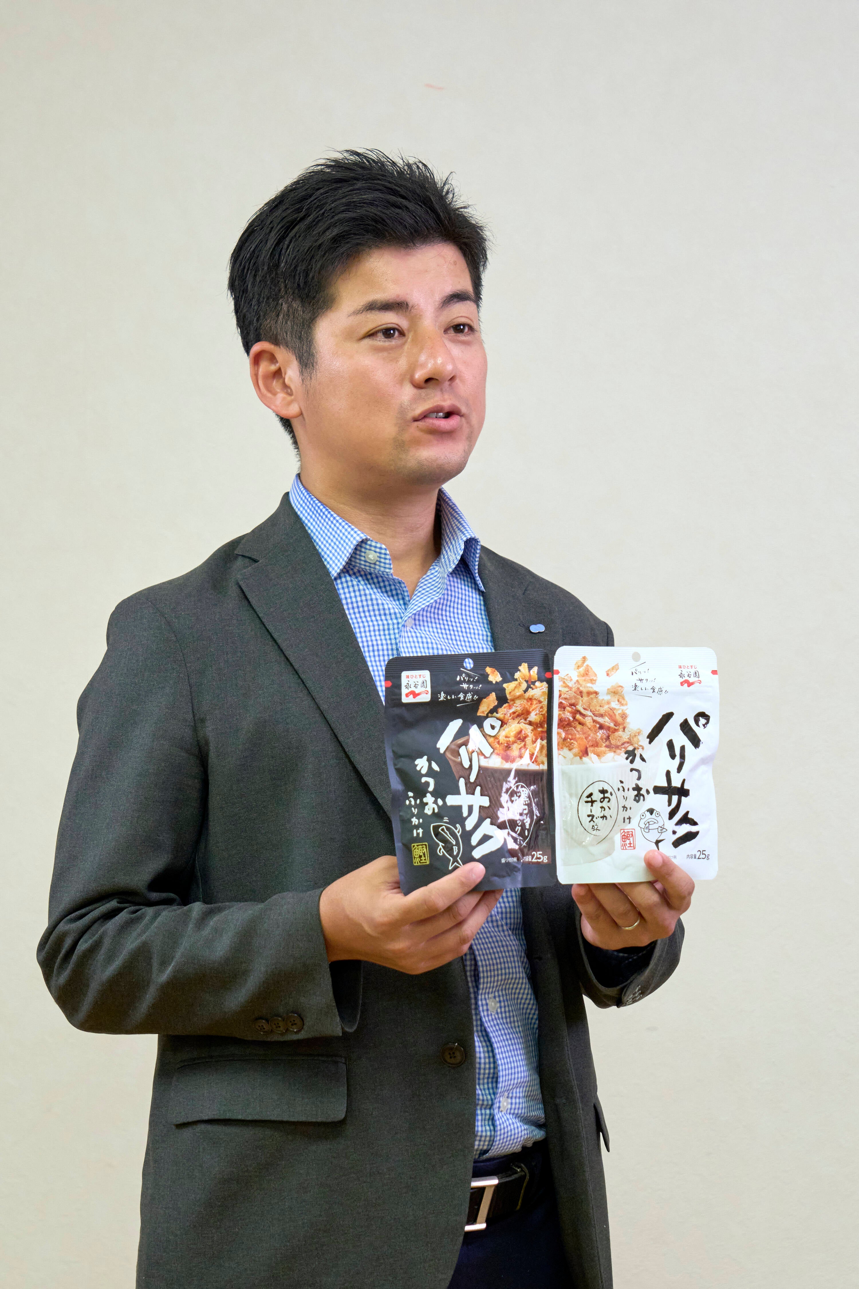 入社から3年間は調査関連の業務に従事。その後12年間営業として名古屋支店、福岡支店で勤務。2021年に本社商品販売戦略部への異動を経て、2022年8月から現職。長年の営業経験を活かしながら、ふりかけ担当として、おとなのふりかけのリニューアルや今回のパリサクかつおふりかけの新商品を開発。