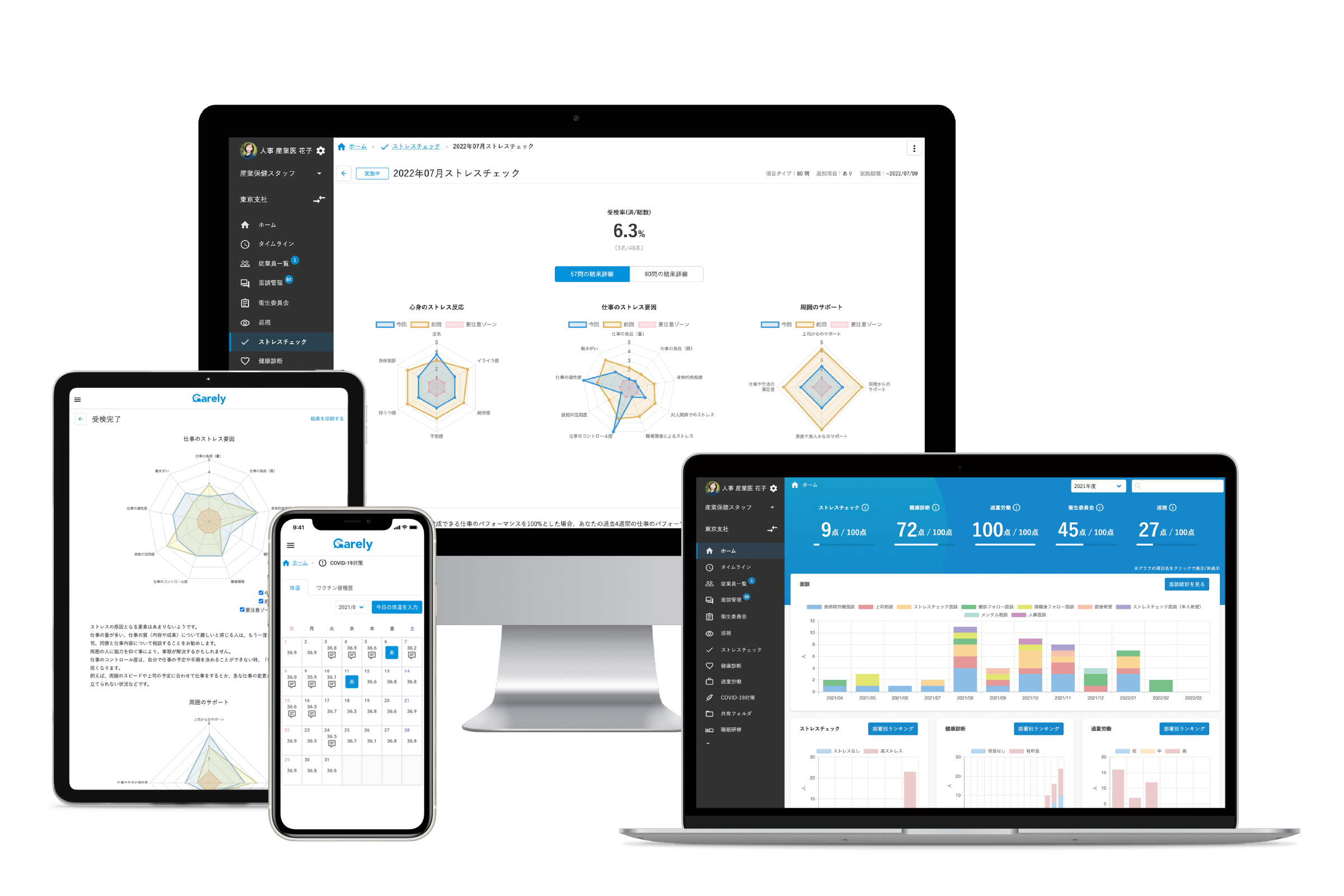 Carelyは企業が主体の「働くひとの健康」づくりを専門家とテクノロジーの力でサポートしています。