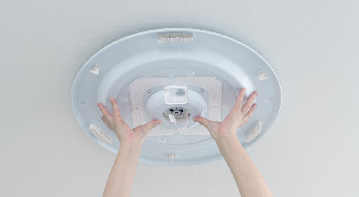 天井に木ねじで取り付け専用金具を施工する方式が主流だった「シーリングライトを、一般の人でも自分で取り付けられるようにしたい」という想いから生まれた。