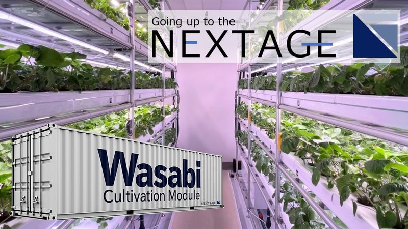 NEXTAGEは、日本が世界に誇る「本物のわさび」を未来に残すことを目指し、40ftコンテナを活用した小型植物工場『わさび栽培モジュール』を開発しました。このモジュールでは、最高級品種として知られる「真妻種わさび」を安定して栽培でき、従来の露地栽培に比べて約半分の期間で収穫が可能です。センサーやカメラによって温度、水流、湿度などの環境をNEXTAGEも監視しており、都度必要なサポートを行うことで、専門的な知識がなくても品質の高いわさびを栽培できる仕組みとなっています。
