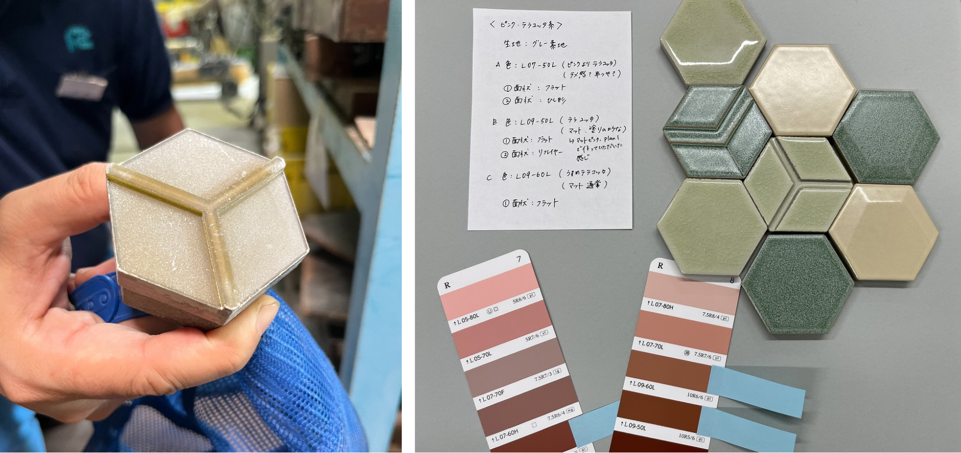 自分たちが作ったタイルが形となり、空間を彩るパーツとなるということに、とても魅力を感じました。商品開発は簡単なことではないと思いますが、いろいろと空間を見てきた目を信じてやってみようと、今回の新商品企画に取り組ませていただきました。