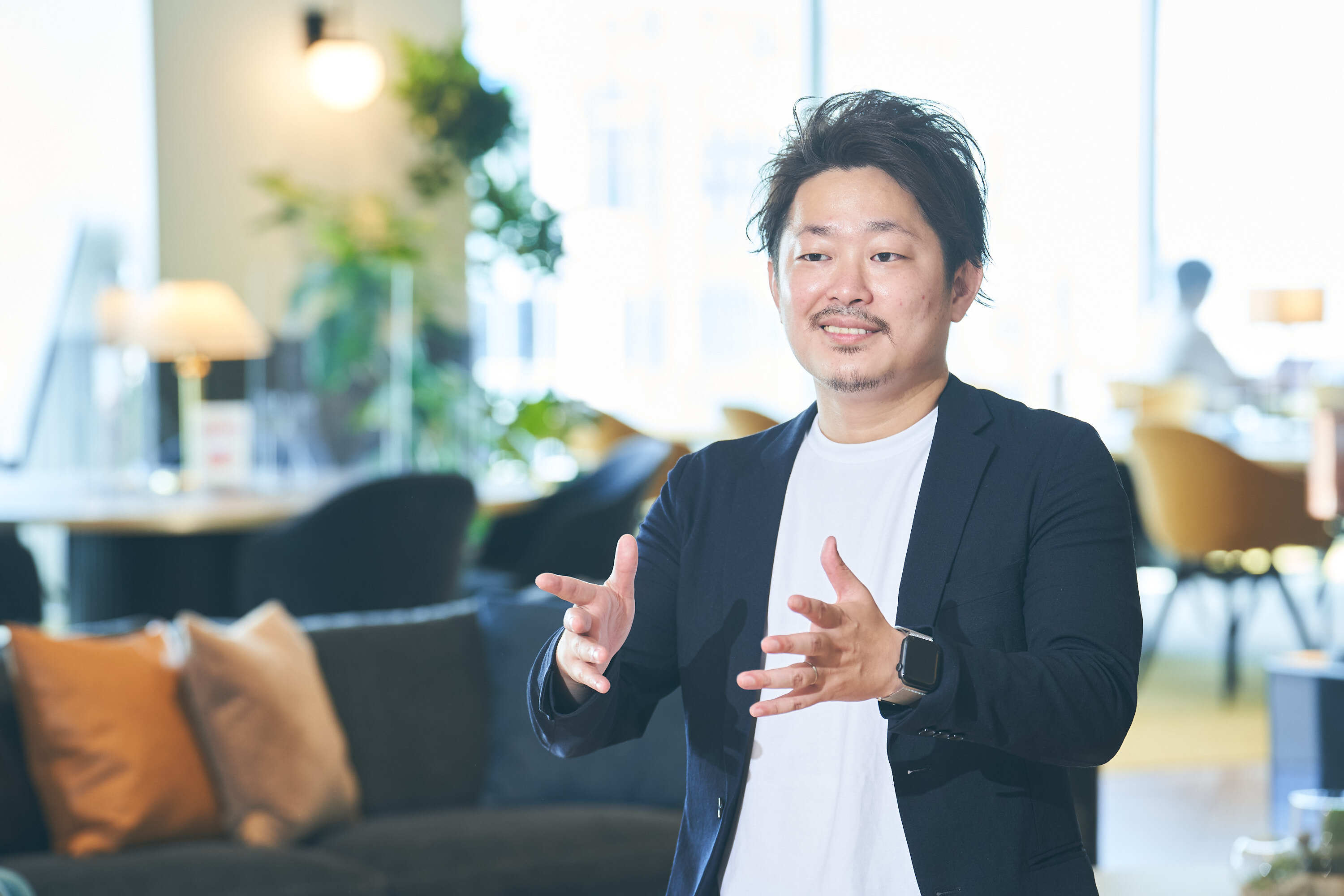 名古屋出身。幼少期から高校までサッカーと勉学に専念。親からの「働くことは辛い」という考えに影響され消極的な思いを抱く。立命館大学国際関係学部で学び、ボストン留学中に日本の働き方の風潮に疑問を抱き、「働く=自己犠牲」から「自己らしさを活かす楽しさ」への転換を志す。インテリジェンス(現パーソルキャリア株式会社)で採用コンサルティングに従事しMVPを受賞。新規事業立ち上げにも参加。
