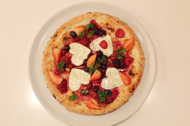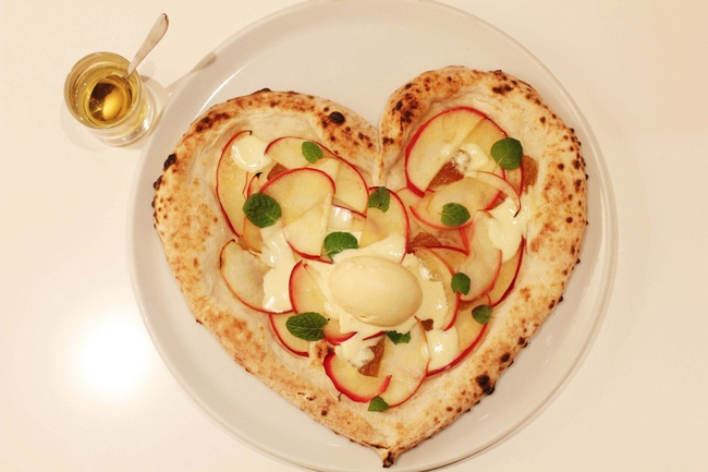 サルヴァトーレ クオモ 表参道ヒルズでは、2015年1月23日(金)~2月14日(土)まで表参道ヒルズの「OMOTESANDO HILLS Valentine 2015」フェア期間中にバレンタイン限定のイートインメニューを提供いたします。ハート型の生地にリンゴとシナモンをトッピングして焼き上げたピッツァに自家製のアイスを溶かしながら食べる“ピッツァ メーラ エ カンネッラ”と4種のベリーとハートをかたどったチョコレートをトッピングした見た目に可愛い“ピッツァ クアトロベリー”の2種類をご用意。女性から男性にプレゼントするのももちろんですが、ヨーロッパ諸国のように男性が女性に喜んでもらうように素敵なデートをセットアップ。レストランを予約し大切な方へ花束をプレゼントしてみるのはいかがでしょうか。ぜひ、SALVATORE CUOMO 表参道ヒルズで素敵なバレンタインを特別なピッツァと共にお過ごしください。
