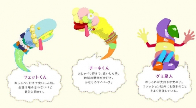 オリジナルキャラクターの「フェットくん」「チーネくん」「グミ星人」 によって繰り広げられる、ゆる~いやり取りに注目!