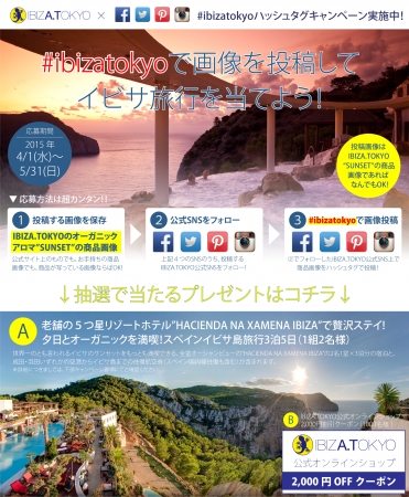 フレグランス事業を行う、株式会社ダースー(本社・東京都渋谷区、代表取締役・須田大輔)は、昨日4月1日よりオーガニックアロマ商品「IBIZA.TOKYO “SUNSET”」〈http://ibiza.tokyo〉の認知拡大を目的に「スペインイビサ島旅行が当たる!ハッシュタグ投稿キャンペーン」〈http://ibiza.tokyo/cp/〉を開始しました。