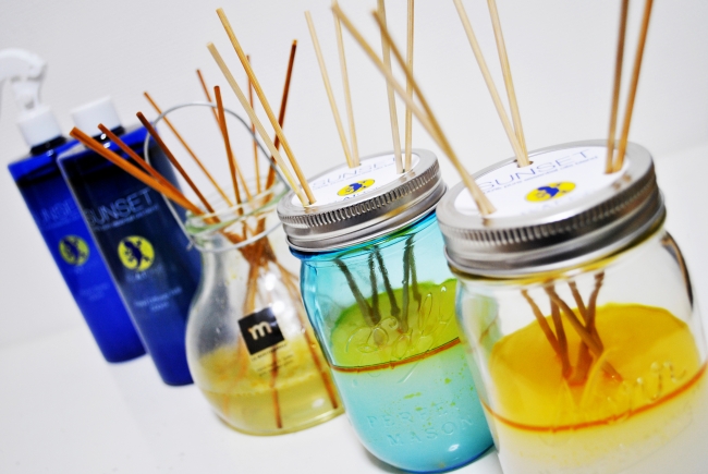 今回のキャンペーン商品となっている「IBIZA.TOKYO “SUNSET”」は、2014年11月10日に発売開始され、スペインイビサ島にインスパイアされたオーガニックアロマ商品です。主軸商品であるディフューザーは、スペイン産リサイクルガラスのランタンを用いたものや、Ball社とその姉妹ブランドKerrのメイソンジャーを用いたものがあり、2015年3月15日より発売開始したばかりのメイソンジャーディフューザーは、昨今のジャーサラダブームに伴って徐々に人気が広がっています。商品の特徴としては、良質のオーガニック精油を11種類ブレンドしているため本格的なアロマテラピー効果があります。また、合成・化学香料を一切使わないハンドメイドのため、ディフューザーの商品化ではなかなか実現が難しい柑橘系のフレッシュ感があり、イビサ島にいるかのように爽やかでリラックスできる香りです。