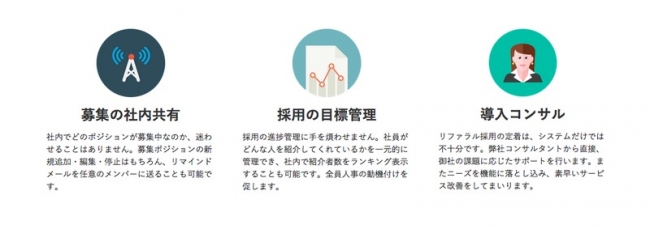 そこで、私たちはリファラル採用の活性化・仕組化を促す社内サービスを提供させていただくことで、良い会社が、良い仲間を引き入れ、強い組織を創ることができる世界観を実現したいと考えております。