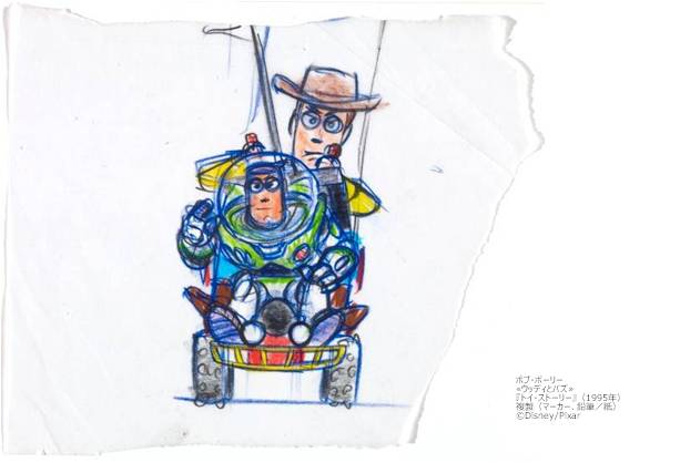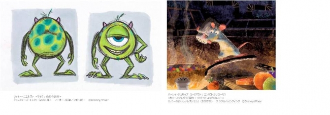 ピクサー作品は、日本やアメリカだけでなく、世界中で上映され多くのファンに愛され続けていますが、それはコンピュータ・アニメーションという優れた技術だけによるものではなく、独創的なストーリーや魅力的なキャラクターの存在があるからです。驚くべきことに、ピクサーには技術スタッフと同じくらい多くのアーティストやデザイナーたちが在籍しており、彼らはストーリーや映画のビジュアルなどを考える企画の構想段階で、手描きのドローイングや、パステル画、彫刻などを数々生みだしているのです。
