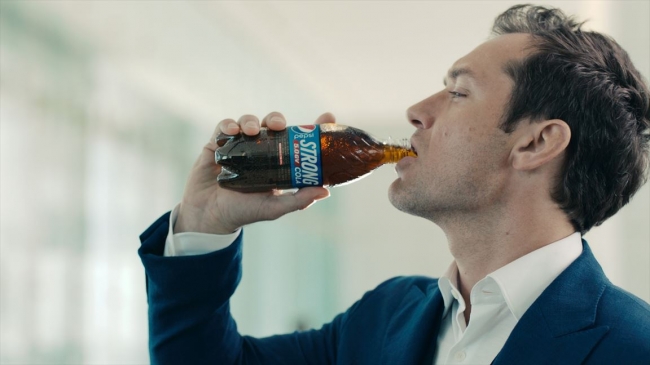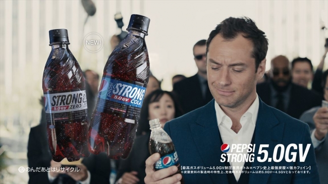 ハリウッドを代表する俳優、ジュード・ロウさんをCMキャラクターに起用し、新発売する“人類未体験の強炭酸ペプシ”、「ペプシストロング5.0GV」の刺激的なおいしさを表現しています。