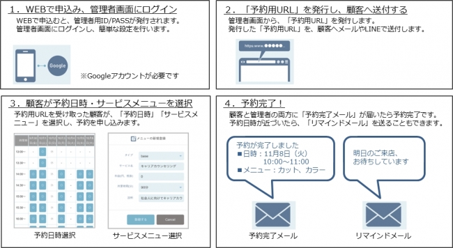 下記のステップで、今日からすぐに予約受付をスタートできます。
