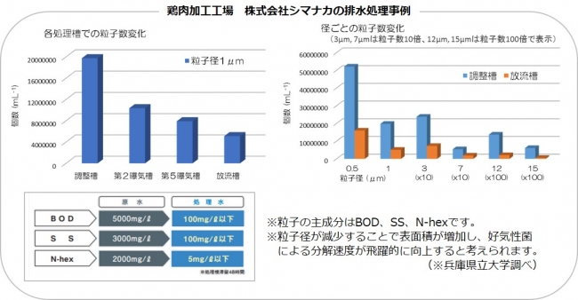 2016年11月14日、株式会社シマナカで実施した兵庫県立大学工学部の伊藤准教授らが行った調査データでは、処理前の原水と処理後を比べると、放流基準値を大きく下回る結果となりました。