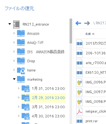 誤って上書きしたファイルや失われたファイルを、任意の時点の状態に復元できます。