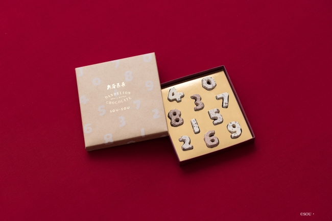 京都上陸に合わせて、「SOU・SOU」「亀屋良長」とのトリプルコラボが実現。上品な甘味の和三盆糖にダンデライオン・チョコレートのカカオを配合し、“SO-SU-U”の数字に型どったお干菓子です。数字別に3種類の異なるカカオの配合の違いをお楽しみ下さい。