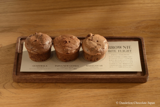 ダンデライオン・チョコレート一番人気のシグネチャーメニューです。それぞれ産地の違うシングルオリジンチョコレートを使用した3種のブラウニーの食べ比べができます。チョコレートの産地以外、ブラウニーの材料、製法はすべて同じ。それぞれ独自のフレーバーが引き立ちます。