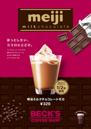 明治ミルクチョコレートが飲める!!発売から92年の歴史上で初のカフェでのドリンクコラボ!!ベックスコーヒーショップ×明治ミルクチョコレート「明治ミルクチョコレートモカ」12/17(月)より期間限定発売