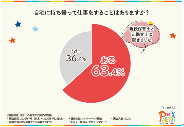 「自宅に持ち帰って仕事をすることはありますか?」と質問したところ、なんと6割以上の方が『はい(63.4%)』と回答しました。