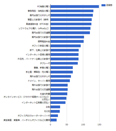 その他、国内出張関連、飲食代(接待)の費用が多い
