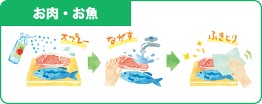 スプレーして流した後は、キッチンペーパーで水分を拭き取ります。