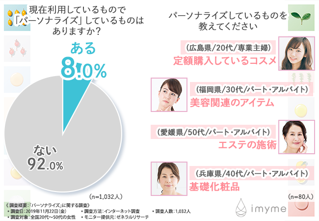 そこで今回キメラボ株式会社(https://imyme.jp/)は、全国20代〜50代の女性を対象に、「パーソナライズ」に関する調査を行いました。