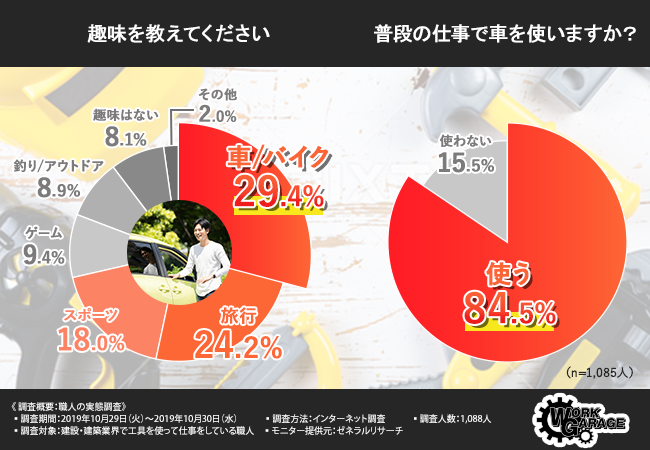 上項では職人の多くが、車やバイクを趣味にしたり、オリジナルのカスタマイズを施したりしていることが判明しました。