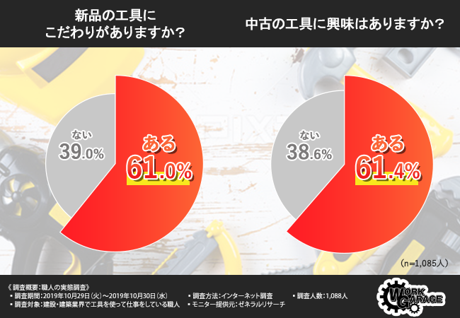 そこで、「新品の工具にこだわりがありますか?」と質問したところ、6割以上の方が『ある』(61.0%)と回答しました。