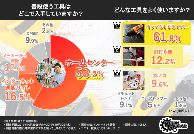 【職人さんはホームセンターで道具を購入!?】6割以上の職人さんが自分に合ったものであれば新品、中古に限らず使いたい!?職人さんの実態調査で見えてきたものとは・・・?