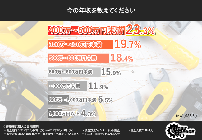 そこで今回株式会社アップガレージ(https://corporate.upgarage.com/)は、建設・建築業界の職人を対象に「職人の実態調査」を実施しました。
